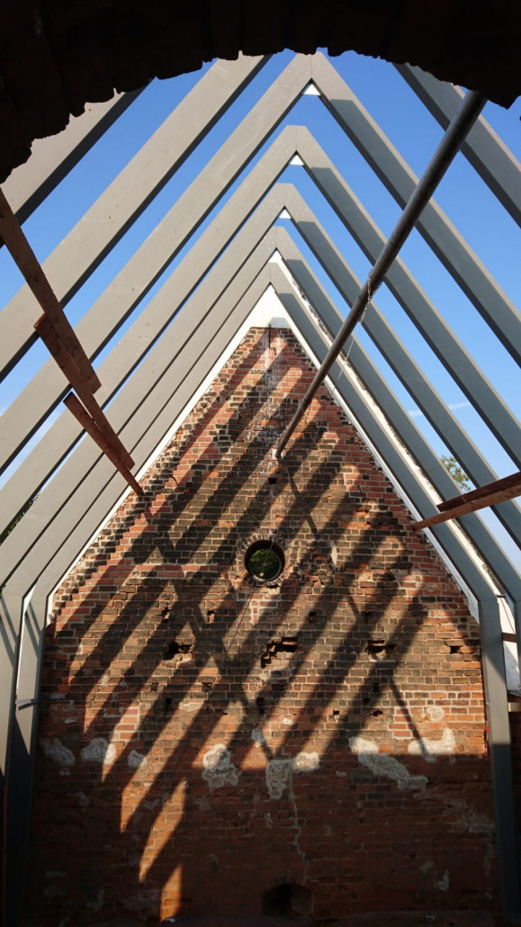 des gesamten Dachgeschosses, der Dachstuhl wurde