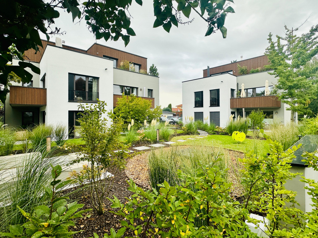 Innenausstattung: versiegeltes Eichenparkett, Großformatplatten, hochwertige Sanitärausstattung, Badmöbel, Einbauleuchten, Natursteinablagen