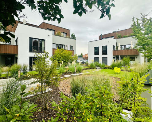 Technik: Luftwärmmepumpe, Klimatisierung mit Kühlung als zusätzliche Kühldecke, Regenwassernutzung