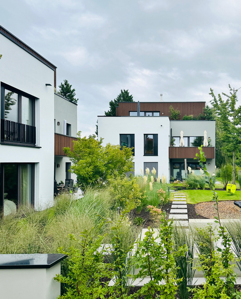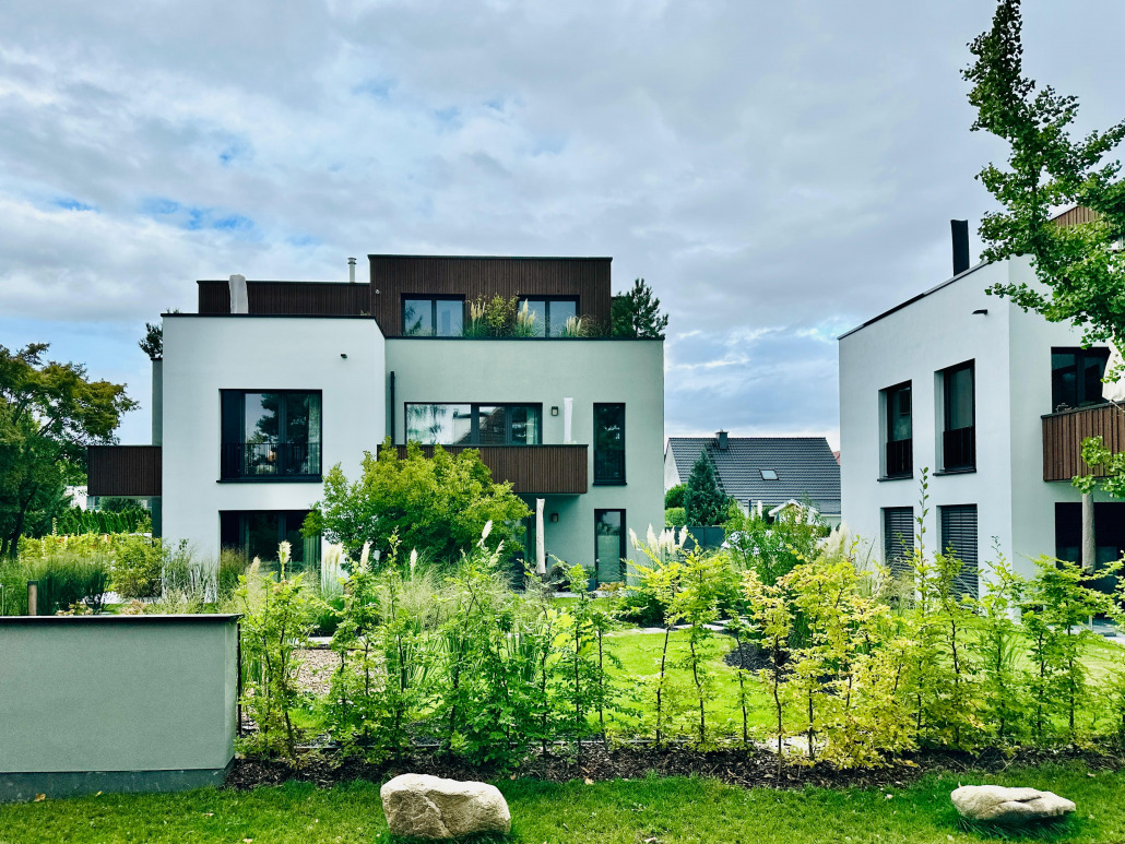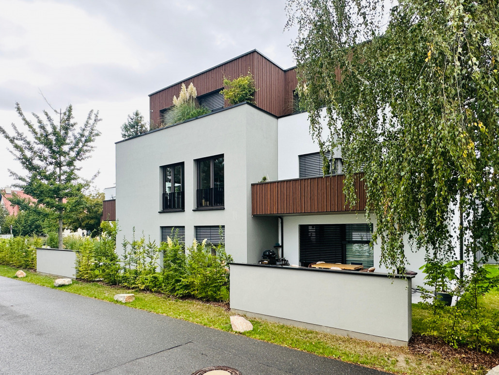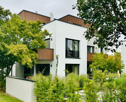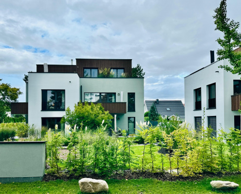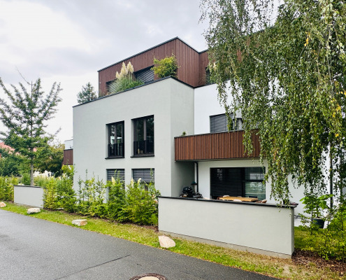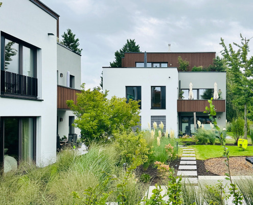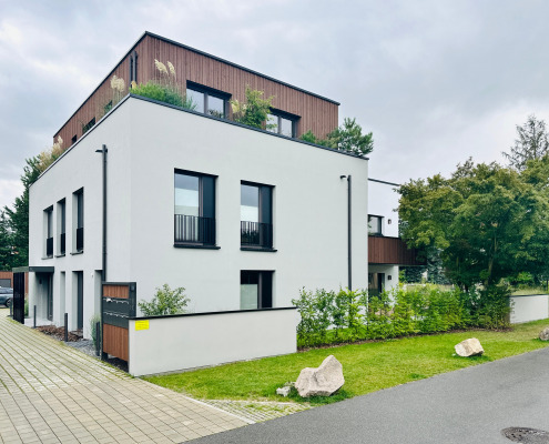 Bauweise: massiv, ca. 15,00 x 15,00 m, 2 Vollgeschosse, Staffelgeschoss, 4 integrierte Garagen