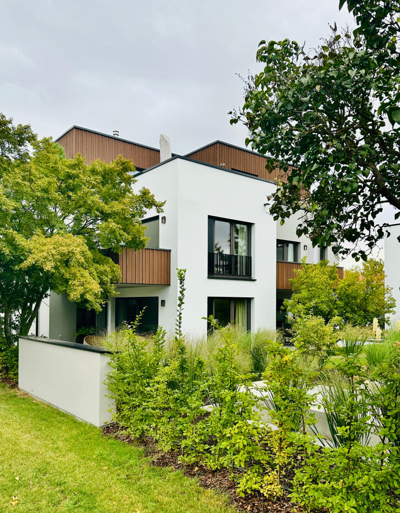umlaufender Dachgarten mit Intensivbepflanzung einschließlich Baumbestand